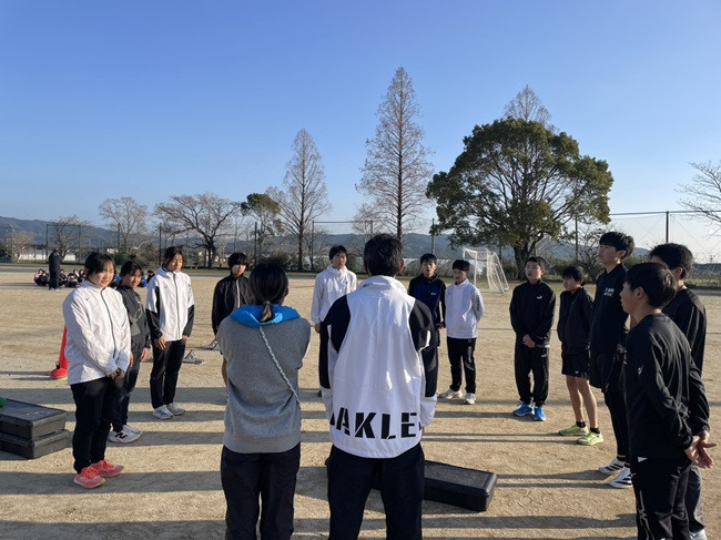 最初の1時間は小学生と一緒にアップをし、残り1時間は100mのレースをイメージして5本走りました!!